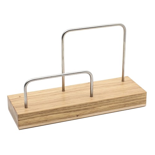 Perfect afgewerkte brievenstandaard in eikenhout en esdoorn en RVS. Geolied. Maat 18,6 x 6,2 x 11 cm. Hoogwaardige kwaliteit. Europees handwerk. Sociale arbeid. Europees hout.