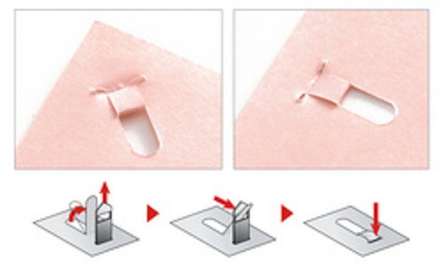 Hechten zonder nieten ! De stevige variant van de oudere kleinere apparaatjes. Dit apparaat kan drie of vier blaadjes (80grs) aan elkaar hechten zonder nietjes. In één beweging wordt er een lipje uit het papier gestanst, omgevouwen, en door een slitje geschoven. Bespaart nietjes. Geeft ook geen verdwaalde losse nietjes in de buurt van kinderen, voedsel of gezondheidszorg. l x b x h : 108 x 35 x 74 mm