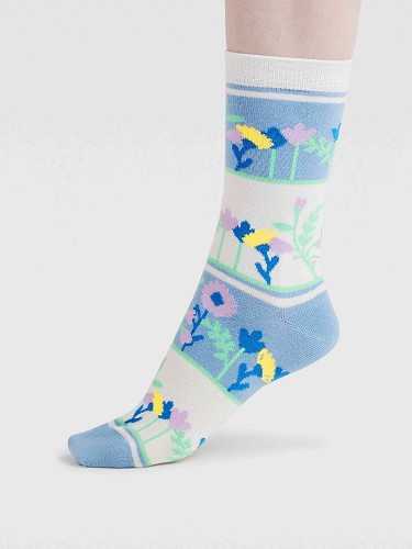 bamboesokken, 'Fraya Floral Garden', violet blue, maat 38-41 (930)