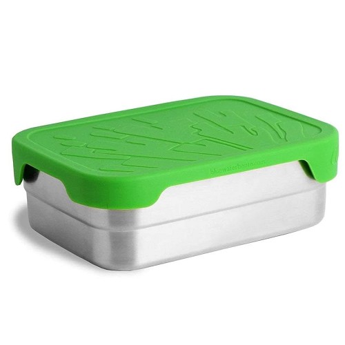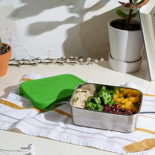BlueWater Bento Splash Box XL. De lekvrije plasticvrije lunchtrommel. Het silicone deksel met koraal-motief is makkelijk te openen en sluiten, ook door kinderhanden. 18,4 x 13,3 x 7 cm inhoud 1180 ml geschikt voor de vaatwasmachine