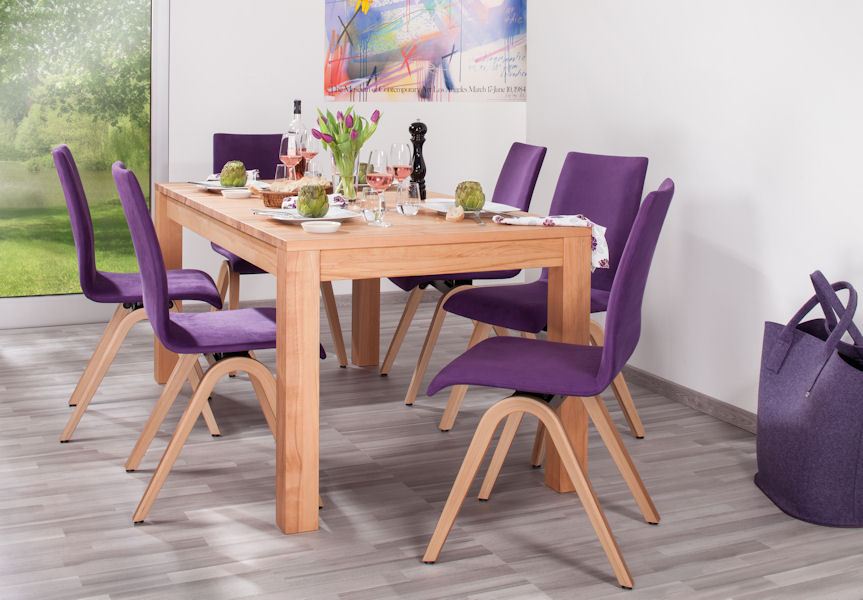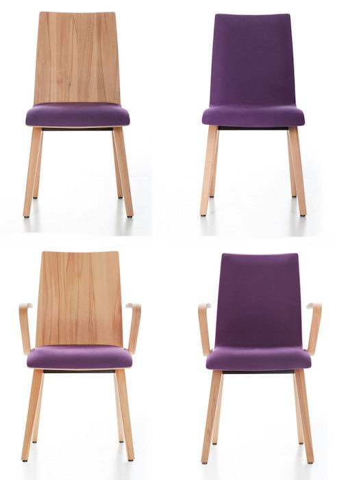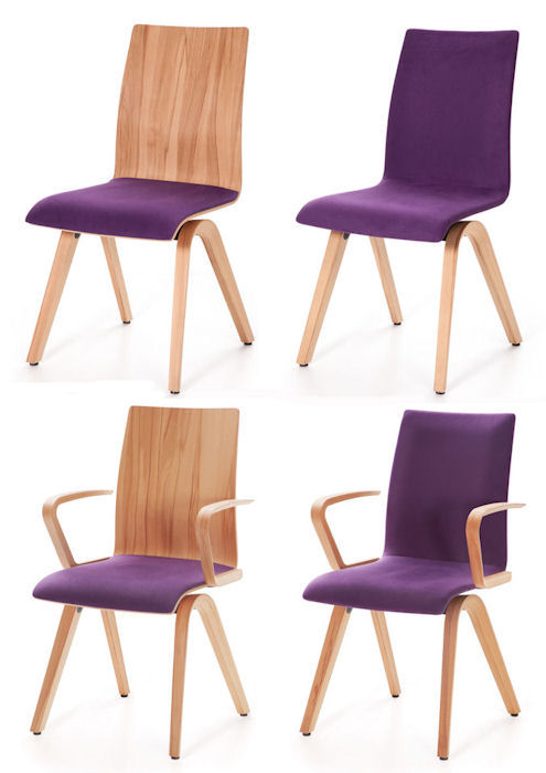 Met de vele keuze-opties past u de stoel naar uw eigen wensen aan: - vier stofkwaliteiten, tientallen kleuren, - met of zonder houten armleggers, - houten delen door-en-door beuken of beuken met edelhoutfineer: eiken, kernbeuken, kernessen of noten, - afwerking beuken in lak, olie/was of kleurbeits, - keuze uit drie verschillende vaste zithoogtes, - met houten rug of geheel gestoffeerd.