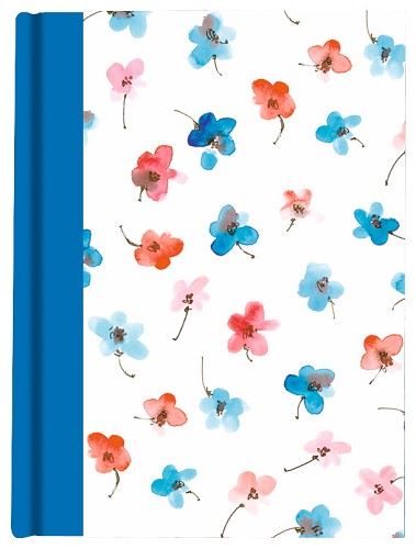 notitieboek gebonden, A5 blanco, bloemen blauw en rose