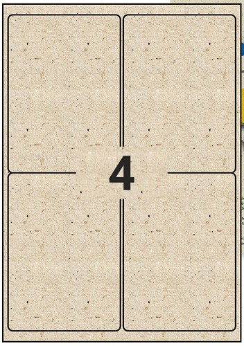 Etiketten gemaakt van graspapier. De helft van het graspapier is zongedroogd gras en de helft is FSC®-gecertificeerde papierpulp op houtbasis. Dit minimaliseert het verbruik van verse vezels en bespaart hout als hulpbron. Dit papier heeft een heel natuurlijke uitstraling door de bijzonder textuur met fijne grasvezeltjes. De snelgroeiende grondstof gras wordt gewonnen uit lokale weiden, zogenaamde compensatiegebieden. Deze etiketten worden in Duisland gemaakt. Graspapieretiketten zijn composteerbaar, recyclebaar en goedgekeurd voor direct voedselcontact volgens ISEGA. Bovendien zijn ze milieuvriendelijk en hulpbronnenbesparend bij de productie. De maat van het etiket: net iets kleiner dan A6 99,1 x 139 mm met afgeronde hoeken. Per A4-vel: 2 rijen van 2 etiketten, totaal dus 4 etiketten per vel. Leverbaar per 5 vel of in een doos à 50 vel (voor zover op voorraad) 5 vel A4 = 20 etiketten 50 vel A4 = 200 etiketten Geschikt voor laser en copieer-apparaat. Iets minder geschikt voor inkjetprinters. Let op: de zwarte lijnen op de foto staat alleen op de foto om de maat duidelijk te maken. De etiketten zijn onbedrukt.