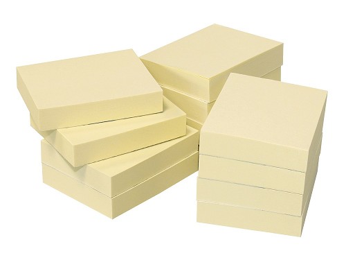 Blokje met 100 vel zelfklevende memoblaadjes. Recycled papier. 40 x 50 mm, geel. keurmerk: Blauwe Engel