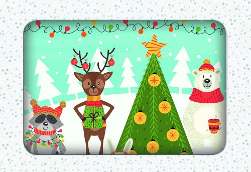 Een set met 12 dubbele kleine kerstkaarten met witte enveloppen. Kaart en envelop van 100% kringlooppapier. Het doosje bevat 12 dezelfde kaarten met enveloppen. Er staan in de binnenkant van de kaarten geen teksten. Het formaat van de kaart is 74 x 105 mm en het formaat van de envelop is 80 x 114 mm. Merk: Floris Design: Studio SP
