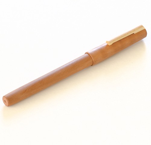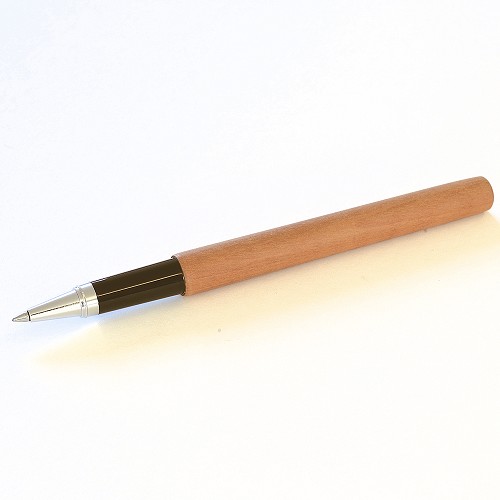 Rollerbal in perenhout met esdoorn clipje. De pen schrijft blauw. De pen kan worden nagevuld met een standaard rollerbal-vulling. Zelfs het clipje van de dop van de pen is van hout! Past met perenhouten vulpen (B3069) mooi in bijbehorende perenhouten etui (3053). Geproduceerd in Europa door mensen met een beperking.