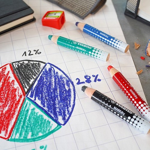 MARKdry is het allereerste potlood voor het gebruik op whiteboards, flipovers en papier.