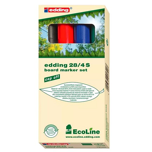 Reukarme boardmarker met oplosmiddel op alcoholbasis. (De boardmarker zonder oplosmiddel bleek helaas niet funktioneel.) Makkelijk navulbaar met BTK25. Op gladde, gesloten oppervlakken, zoals whiteboard of glas, droog afwisbaar. Met 'cap-off' technologie: de stift droogt niet direct uit als men de dop even vergeet. Houder van recycled kunststof (minimaal 90%). Ronde punt. Een doosje met de kleuren zwart, rood, blauw en groen.