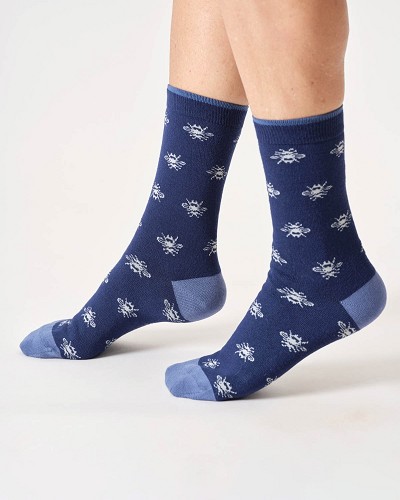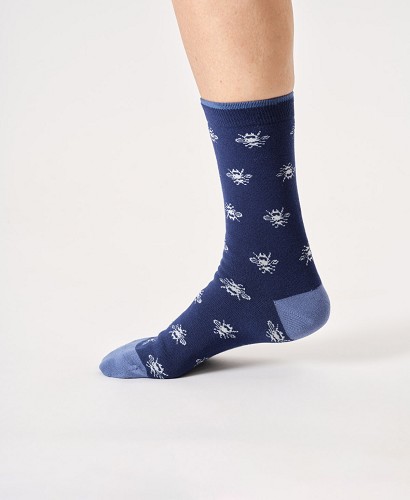 bamboe sokken, 'Bee', Midnight Blue, maat 38-41 (TA 639 B)