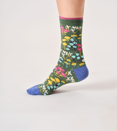 bio katoen mix sokken, 'All Over Floral', Eucalyptus, maat 38-41 (TA 641 C)