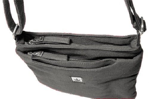 Een handig compact tasje voor je papieren, portemonnee en enkele andere kleine spulletjes. Dit tasje heeft drie vakken. Het voorste is een plat open vakje van ongeveer 19 x 15 cm. Het middelste vak sluit met een rits en is ongeveer even groot. Het hoofdvak sluit ook met een rits en is iets groter (19 x 18 cm). Hierin bevindt zich - een open plat vakje (8 x 9 cm) - een open vakje van 8 x 4 x 2 cm - een plat vakje met rits (9 x 14 cm). Met verstelbaar (schouder)bandje. Materiaal: 55 % hennep, 45 % biologisch katoen L x B x H = 18 x 2,5 x 19,5 cm vegan