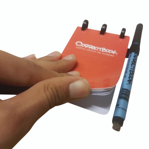 Dit duurzame uitwisbare notitieblokje zorgt ervoor dat jij veel papier bespaart. Daarnaast zorgt Correctbook dat je met je aankoop bijdraagt aan een oplossing voor analfabetisme. Correctbook doneert namelijk één trimester aan wisbaar schrijfmateriaal in Afrika voor elk verkocht Correctbook. Wanneer je met de speciale, bijgeleverde pen in een correctbook schrijft of tekent kun je je aantekeningen altijd weer uitwissen. Je kunt zo makkelijk correcties aanbrengen maar ook vroeger of later hele delen wissen. Maar tot die tijd zijn je aantekeningen veegvast. Door het click-systeem kunnen de bladen makkelijk uit het boek genomen worden en op een andere plaats weer terug geplaatst. Met de Correctbook Scan App kun je je aantekeningen digitaal bewaren voordat je ze wist. Papier met privacy gevoelige aantekeningen hoeft niet meer door de shredder. Correctbook wordt in Nederland gemaakt door mensen met een afstand tot de arbeidsmarkt. (De Correctbooks voor Afrika worden in Afrika gemaakt.) Met behulp van Trees for All wordt de C02 gecompenseerd door het beschermen en aanplanten van nieuwe bossen. Laten we samen de wereld verbeteren met Correctbook’s herbruikbare notitieboeken! A7 Formaat (11 cm x 7 cm) flexibele omslag 20 uitwisbare blanco bladen (40 bladzijden) inclusief een zwarte uitwisbare pen (Fijn 0.6 mm) en wisdoekje. Extra bij te bestellen: pennen in blauw, zwart, rood of groen pennen in Medium of Fine navulflesjes voor de blauwe en zwarte pennen Voor dit kleine boekje zijn geen extra losse bladen na te bestellen.