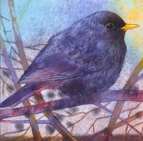 Dubbele wenskaart met envelop Loes Botman "merel"  S-LB 190
