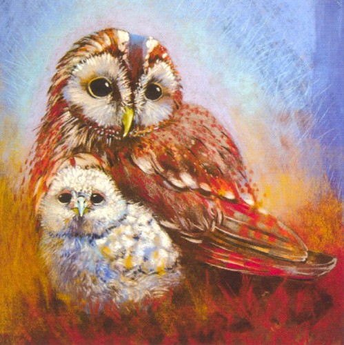 Dubbele wenskaart met envelop Loes Botman "uil met jong" S-LB 238