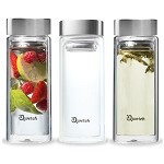 Le Théière Nomade. Mooie fles om je thee ongeveer een uur warm te houden. Als je met kantoorwerk bezig bent, een boek leest of in de tuin zit. De kleinere filter gebruik je als je je thee lang wilt laten trekken. Bijvoorbeeld voor kruiden thee. Of voor fruit. Je kunt de kruiden of fruit in de kan laten zitten en als je uitschenkt houdt de filter het tegen. De grotere is een theefilter voor zwarte thee die maar even hoeft te trekken. Daarna neem je de filter met de thee weer uit de kan. Materiaal: extra sterk glas (borosilicaat) RVS deksel silicone afdichting BPA vrij buitenmaat: hoogte: 18,5 cm doorsnede : 7 cm Inhoud: 320 ml.