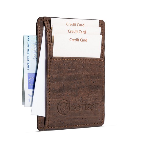 Super compacte houder voor bankpasjes e.d. Er zijn aan een zijde drie vakjes voor pasjes. In ieder vakje passen meerdere pasjes. Deze pasjes zijn tegen skimmen beschermd. Aan de andere zijde is een vak met zichtvenster. In het midden zijn twee vakjes voor opgevouwen briefjes zoals bankbiljetten. Kurk is een heerlijk natuurlijk materiaal. Ambachtelijk handwerk uit Portugal. Kurk is licht, sterk, water- en vuilafstotend. buitenmaten: 11 x 8 x 0,5 cm 100% animal free
