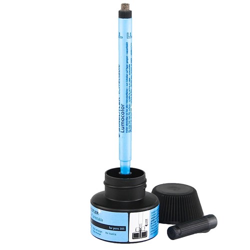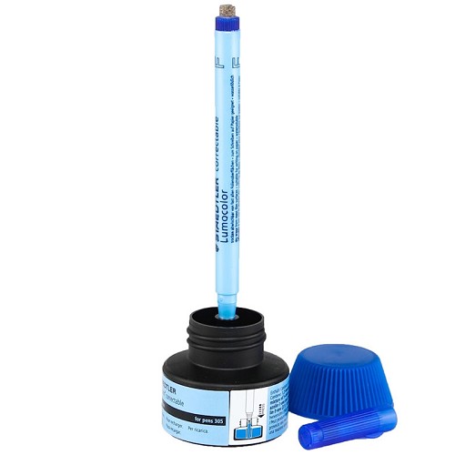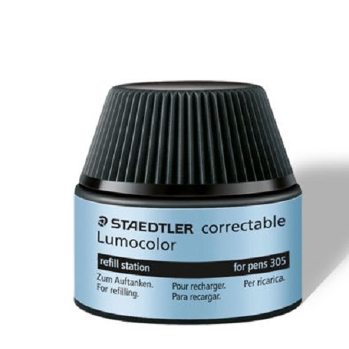 Met dit navulstation kun je de Steadtler Correctable makkelijk navullen. Je plaatst de punt van de stift in het flesje. De stift zuigt dan automatisch de inkt op. Na enkele minuten is de stift weer bruikbaar. Binnen maximaal 24 uur is de stift volledig gevuld. Het is onmogelijk de stift te overvullen omdat de pen alleen zijn eigen maximum capaciteit kan opnemen. Het is belangrijk de stift op tijd na te vullen. Als de stift al helemaal droog is zal hij nog nauwelijks inkt kunnen opzuigen. Inhoud 20 ml. Geproduceerd in Duitsland. Leverbaar in zwart en blauw.