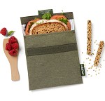 Dit duurzame alternatief voor de wegwerp boterhamzakjes bespaart tot 500 plasic zakjes. Ideaal voor sandwiches, snacks, groente of hardfruit. Makkelijk te reinigen omgekeerd in een handsopje. Eventueel ook geschikt voor de wasmachine (60C) of vaatwasser. Materiaal: de buitenzijde is van 50% katoen en 50 % polyester, de binnenzijde van waterdicht polyester. Giifvrij, voedselveilig, vrij van lood, ftalaten en BPA. Sluit met klittenband. Maat: 18 x 18 cm