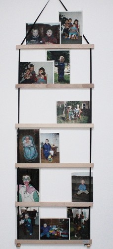 Handige houder van 6 houten latjes en gekleurd lint waarin u veel wenskaarten of foto's kwijt kunt. Niet alleen rond de kersttijd kunt u al uw kaarten presenteren op een leuke manier. De middelbrede korte meerkaarthouder is 100 cm hoog (vanaf het bovenste latje) en 38 cm breed. De latjes zijn gemaakt van beuken of berkenplex. De kleur van het lint is creme-kleurig.