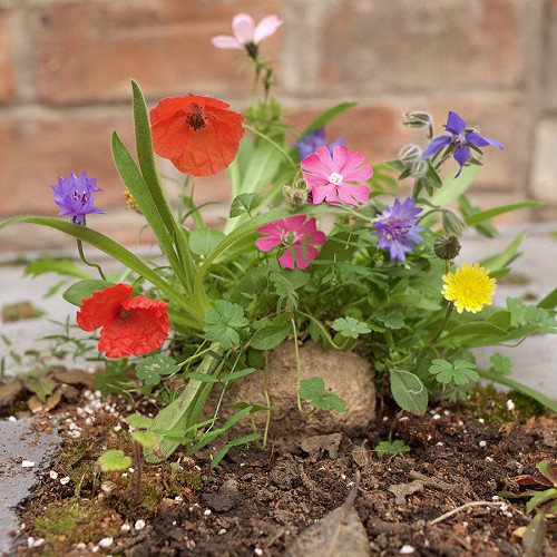 De vriendelijke zaadgranaten. Biologisch afbreekbare en composteerbare granaat op basis van zetmeel, organische turfvrije compost, inheemse wilde bloemen / kruidenzaden, FSC 100% gerecyclede en recyclebare lijmvrije kartonnen verpakking. De 'ButterflyBom' bevat een mix van wilde bloemen waar de vlinders en andere bestuivende insecten dol op zijn. Soak it, Throw it, Grow it. 1) Aktiveer de seedbom door de papieren 'pen' los te trekken en de bom voorzichtig met water te vullen totdat deze geheel verzadigd is. 2) Gooi de bom op een verlaten braaklandje of in een verwaarloosd hoekje. (in je eigen tuin mag ook, of in een bak op je balkon) De bom NIET (volledig) ingraven. 3) Let op dat de bom vochtig blijft, maar niet te nat. En dat er voldoende licht is. De 'Butterflybom' is bruikbaar vanaf maart tot juni. (Of in augustus tot oktober voor bloei in het volgende jaar.) l x b : 8 x 5 cm Herkomst: composteerbare huls uit Nederland idee en inhoud uit Schotland afgevuld in Nederland Huisdiervriendelijk